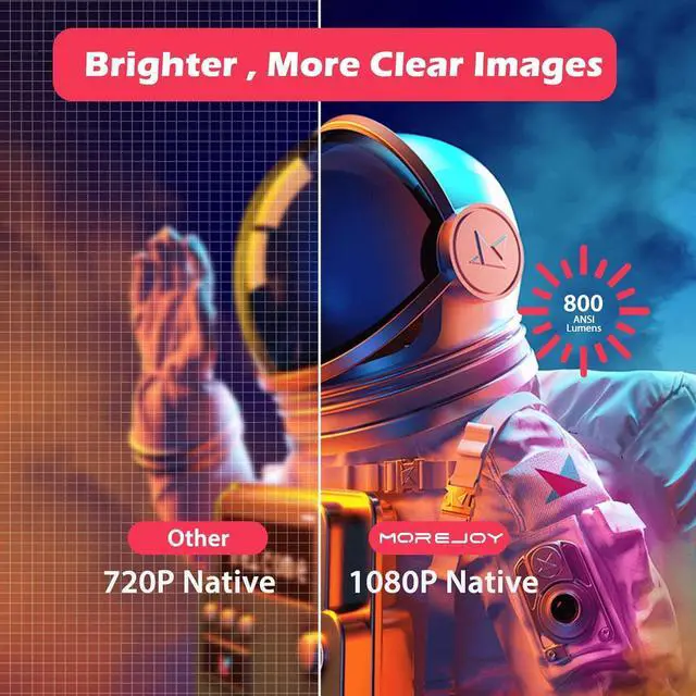 [800 ANSI 1080P & 4K Supoort] Great brightness and resolution make screen size over 200" easy and more