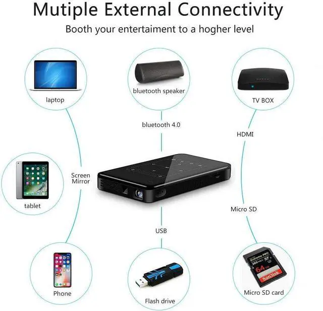 TURN HOME INTO A CINEMA - MULTIPLE SCREEN SIZES The projector uses DLP display technology, HD 4K decoding with 200 inch giant screen.You can watch movies comfortably at home. You can experience 30-200 inch picture without screen. It appUes to many types of houses. No matter how big the house is.how big is the cinema!