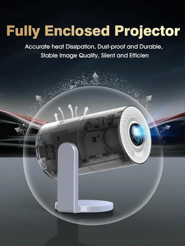 Sealed Optical Engine: Precision Cooling, Dust-proof & Silent. This projector features a sealed optical engine for reliable, long-term performance. The precision cooling system effectively prevents overheating to maintain consistent brightness and accurate colors. Its fully enclosed design blocks dust and debris, reducing maintenance needs and enhancing durability. You get sharp, stable images with minimal operational noise, making it well-suited for movies, gaming in black environment