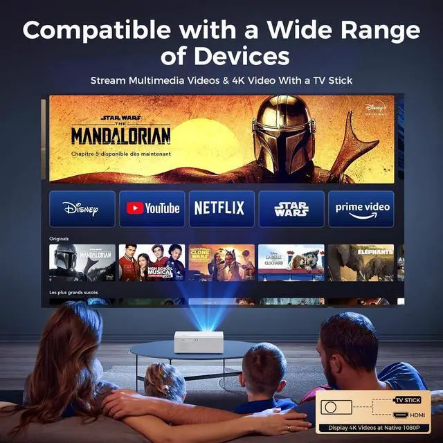 Enhanced Connectivity|WIFI 6 & Two Ways Bluetooth : Featuring dual-band 2.4G/5G WiFi and Bidirectional Bluetooth technology, this tv projector with WiFi and Bluetooth ensures stable connections for streaming your favorite content and sharing presentations, giving you maximum flexibility in how you use your portable projector