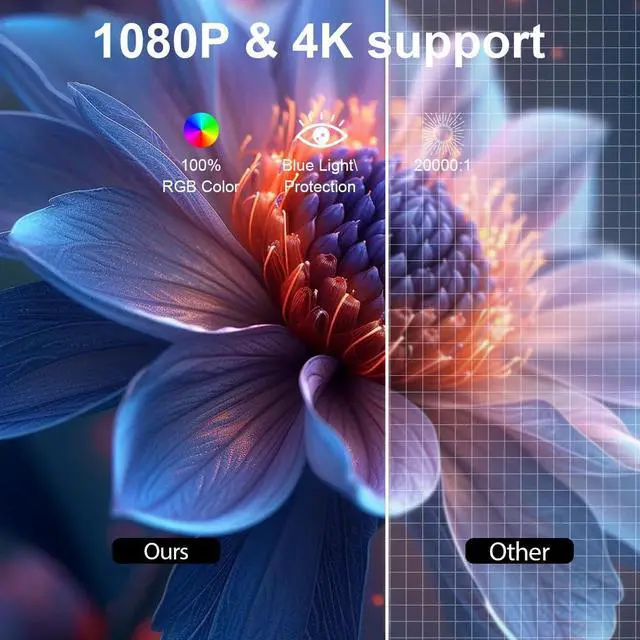 Super Clear Visual Experience Experience an astonishing 4K and full HD 1080P resolution with a brightness of up to 300 ANSI lumens. Whether at home, outdoors, or in a business meeting, you can enjoy high-definition clarity in your images, enhancing your entertainment, gaming, and presentation experiences, allowing you to enjoy it all day long.