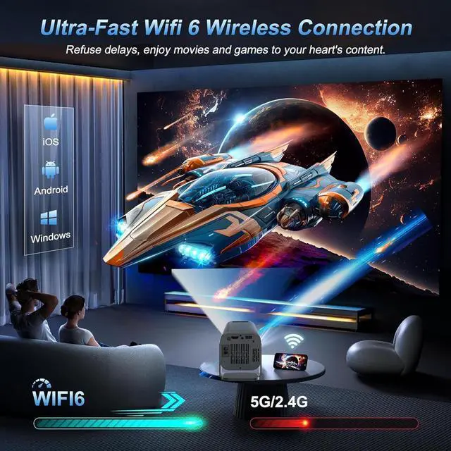 Enjoy a vast library of entertainment. Our mini projector features Android 11 and WiFi 6 technology for seamless connectivity and superior performance, delivering a truly intelligent viewing experience.