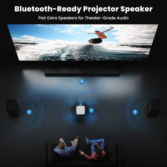 [WiFi 6 - Faster Speed, Zero Buffering] With WiFi 6 technology, this wireless projector delivers lightning-fast speeds for smooth 4K streaming, lag-free gaming, and effortless browsingeven with multiple devices connected. Works instantly with iPhones, Androids, and Windows laptops, so you can wirelessly mirror your favorite shows, movies, or games in seconds. No more frustrating delays, just big-screen fun without the WiFi hassle!