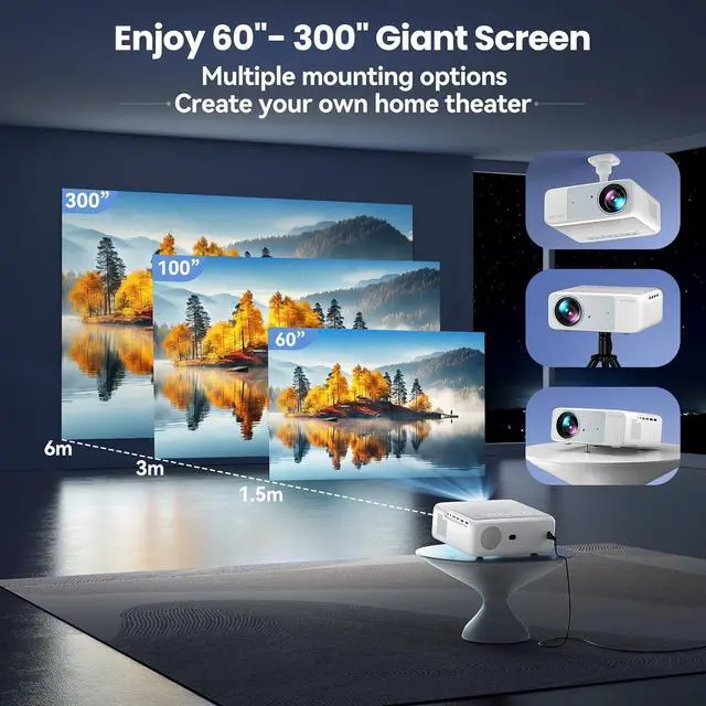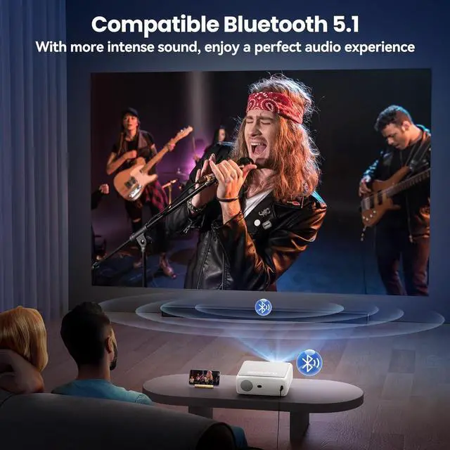 Advanced WIFI6 ProjectorLT2 smart projector is compatible with 2.4GHz and 5GHz networks, the maximum rate can reach 9.6G bps. You can enjoy three times faster speeds, larger capacity for data transfer and lower latency than 5G network when used with a WiFi 6 router. Besides, The Bluetooth projector has more stable connections, you can say goodbye to delay and stuck. Whether you're watching movies or playing games on Xbox, PS4/5 or Switch, you can enjoy a smooth viewing and gaming experience!