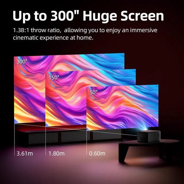 300" Giant Screen & Home Theater Experience Transform any space into a home theater with a massive 300" display, perfect for movie lovers and gamers. The BETTDOW AC1080 combines high brightness, Netflix certification, and smart features to deliver an immersive big-screen experienceright in your living room.