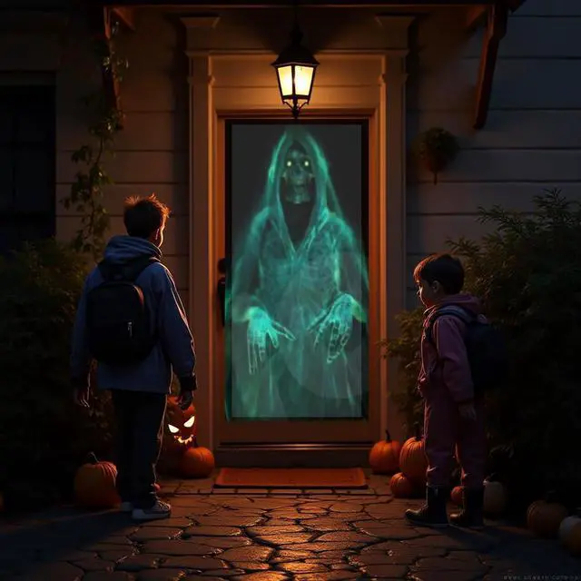 The Halloween Digital Decoration Kit includes all of following Items: 1280 x 720 mini LED projector with sound and remote; AtmosFX Halloween Special Effects Video on USB Stick - with 5 different scenes; Qty 1 - 5 ft x 9 ft Reaper Brothers translucent rear projection Screen formatted for your Window or Door that creates a perfect 3D effect (includes mounting tabs). A ghastly gathering of ghouls, specters, and poltergeists has arrived from beyond the grave, materializing before the unbelieving eyes of those who visit your home. All four of the shocking spirits of Phantasms Decoration Collection are simply dying to levitate, shriek, and startle the mortals who dare to look upon them ensuring your Halloween display becomes the hit of the neighborhood!