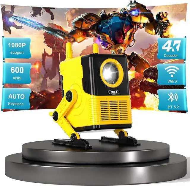 • 600 ANSI/1080P Support/4K DecodingXBJ mini projector. 600 ANSI brightness delivers vivid colors in dim roomsperfect for family movie nights or gaming marathons. 1080P support and 4K decoding! makes movies, shows, and presentations pop. The high-transparency lens ensures 90% uniformity, so image of the screen stays sharp.