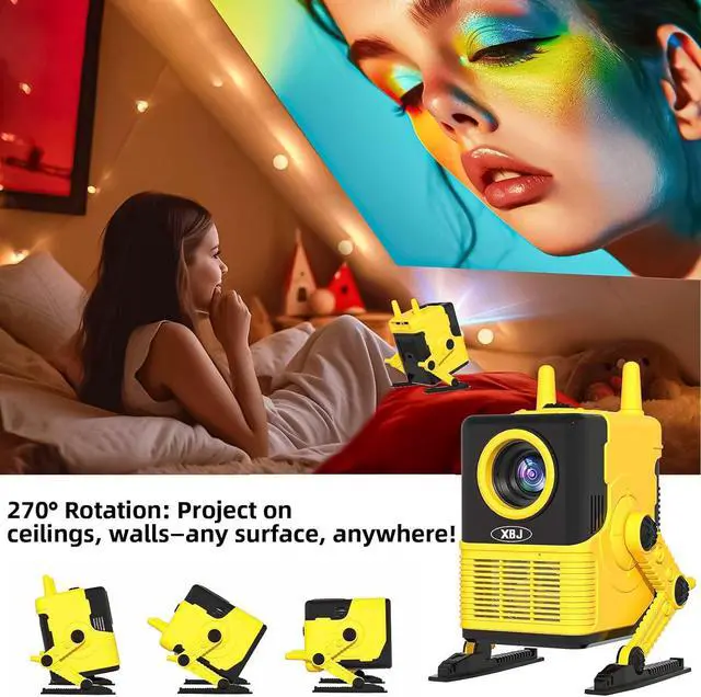 • Adorable Robot Design Decor & Projection in One!This isnt just a projectorits a stylish robot buddy for your space! The cute, futuristic design doubles as a desk decor piece, while the 270° rotatable projects 30150" screens on walls/ceilings. Kids love its playful look, and adults appreciate the sleek aesthetic in living rooms or home offices. A conversation starter that works as hard as it looks!