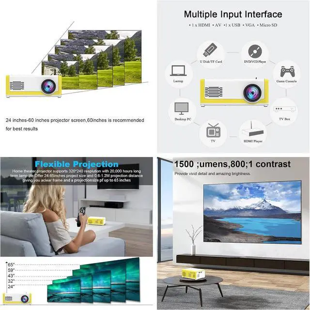 Mini Projector, Portable Projector For Cartoon, Outdoor Movie Projector, LED Video Projector For Home Thea-ter Movie Projectora