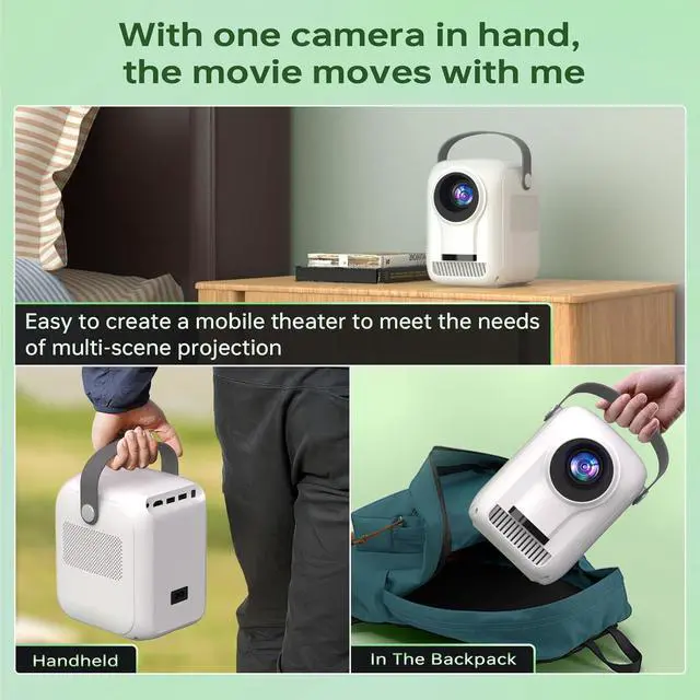 Portable Design: Small projector adopts a carefully designed portable structure, ensuring functional integrity while effectively reducing size and not occupying too much space. Whether placed in a backpack or handbag, it will not bring you too much burden. In addition, it comes with a user-friendly design handle, allowing you to easily carry it to anywhere you want to use the mini projector, and start your entertainment journey anytime, anywhere.