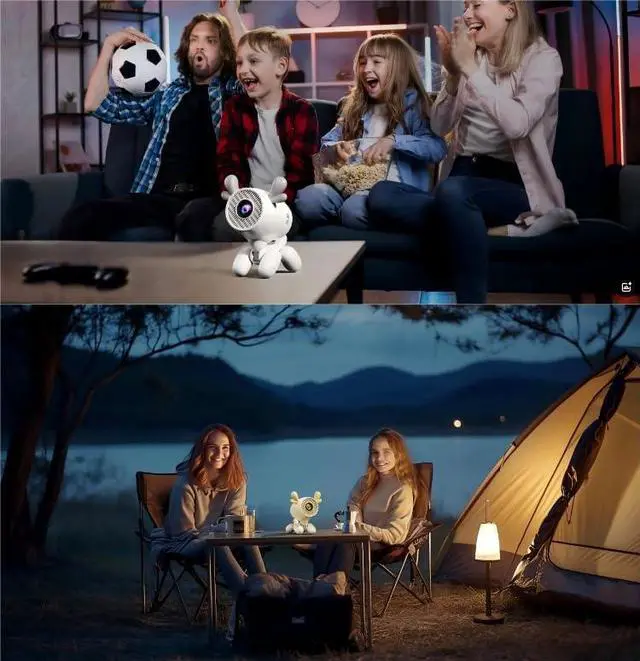 180° Rotable Mini ProjectorThe small projector base comes with a 180° rotating stand, It doesn't require fixed installation, allows for flexible adjustment of projection angles, including from wall to ceiling, and is not constrained by the environment offers unparalleled versatility and convenience. Enjoy an immersive viewing experience from any angle within your home.