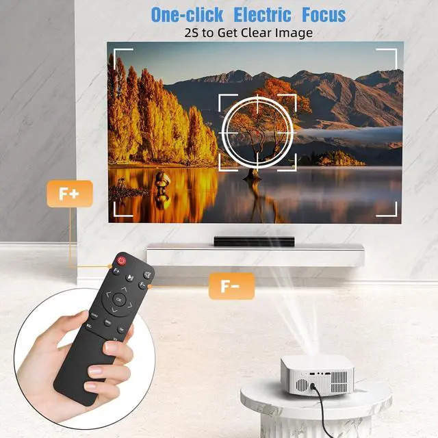 [Electric Focus ] Our movie projector features an advanced electric focusing function, making image clarity a breeze. Simply press and hold F button for 2 seconds, and watch as a sharp, clear image materializes instantaneously. This not only saves you valuable time but also significantly enhances the overall usage efficiency, ensuring a seamless and enjoyable projection experience.