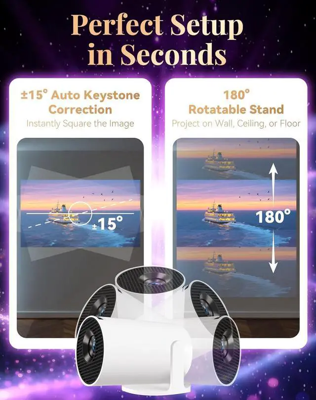Project AnywhereWalls, Ceilings & WindowsWith 180° tilt and auto keystone, this window projector creates stunning window scenes, ceiling stars, or reading room backdrops. Ideal as a window scene projector or indoor bedroom projector for any space.