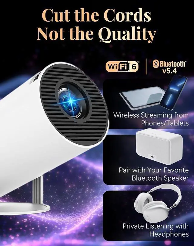 Built-In Apps for Instant Cozy VibesNo cables, no hassle. This smart projector for reading ambiance comes with built-in apps, WiFi, and Bluetoothstream book scenes, window projector visuals, or calming ambiance instantly in your bedroom.