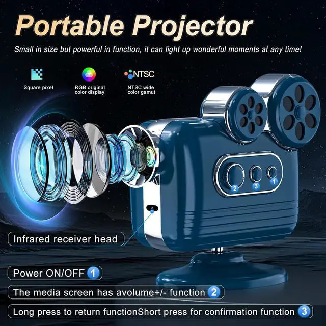 Immersive Cinema ExperienceBESUS Retro Projector supports 4K Full HD. This WIFI projector ensures an unparalleled visual and auditory experience whether at home or outdoors. This projector will surely immerse you in a home theater.