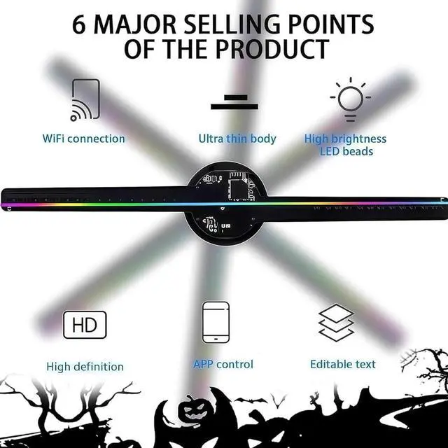 Wide Range of ApplicationsThis 3D hologram fan display is suitable for various settings, including shopping malls, exhibitions, bars, and restaurants. It can also serve as a decorative element for parties, birthdays, Christmas, Halloween, and Valentine's Day. With its large 16.5-inch size and ability to display highly realistic 3D holographic images, it effortlessly captures attention, enhances the atmosphere, and engages viewers