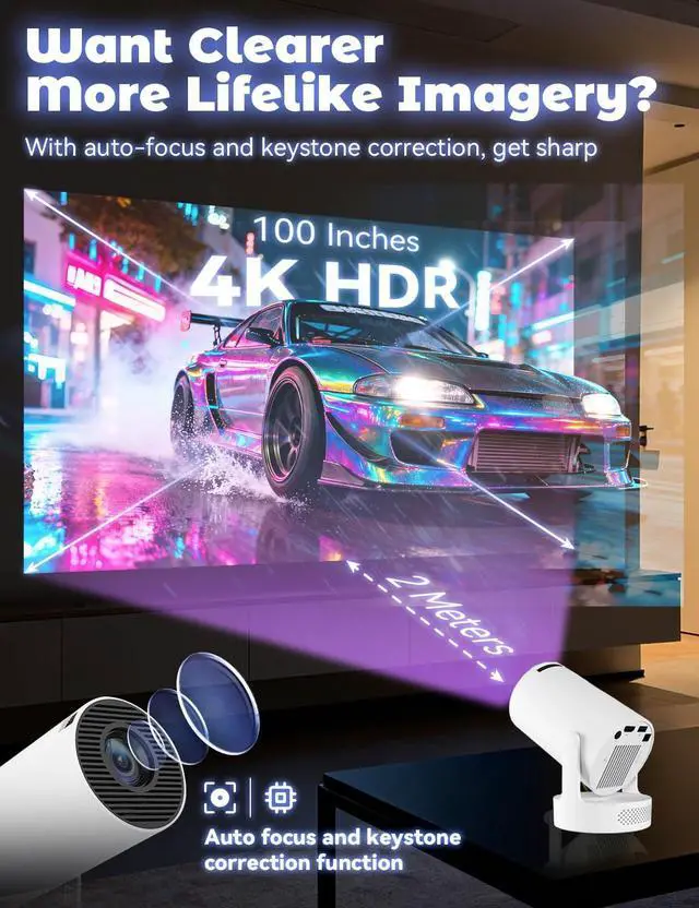 Want Clearer, More Lifelike Imagery?Experience vivid 4K HDR visuals on a 100-inch screen from just 2 meters. With auto-focus and keystone correction, get sharp, crystal-clear images for reading, gaming, or movies, no matter where you place it