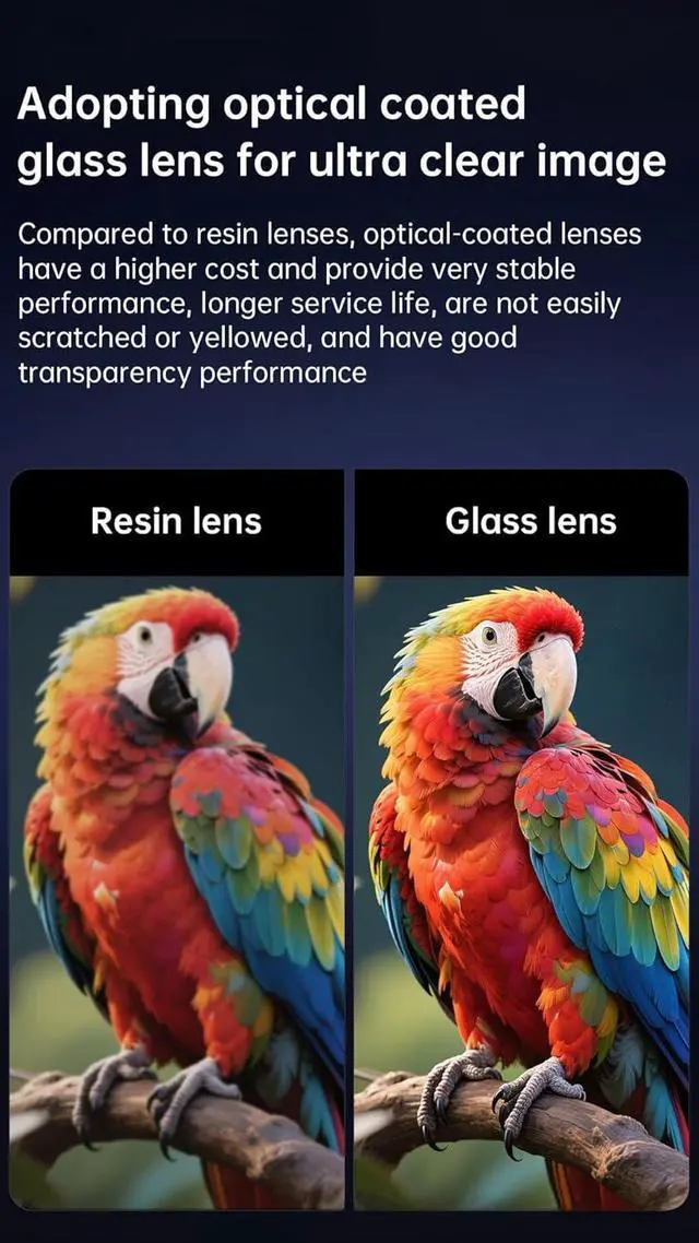 SUPERIOR IMAGE QUALITY: Supports 4K HD resolution with optical coated glass lens delivering ultra-clear images, superior transparency, and vibrant colors that resist scratching and yellowing unlike standard resin lenses