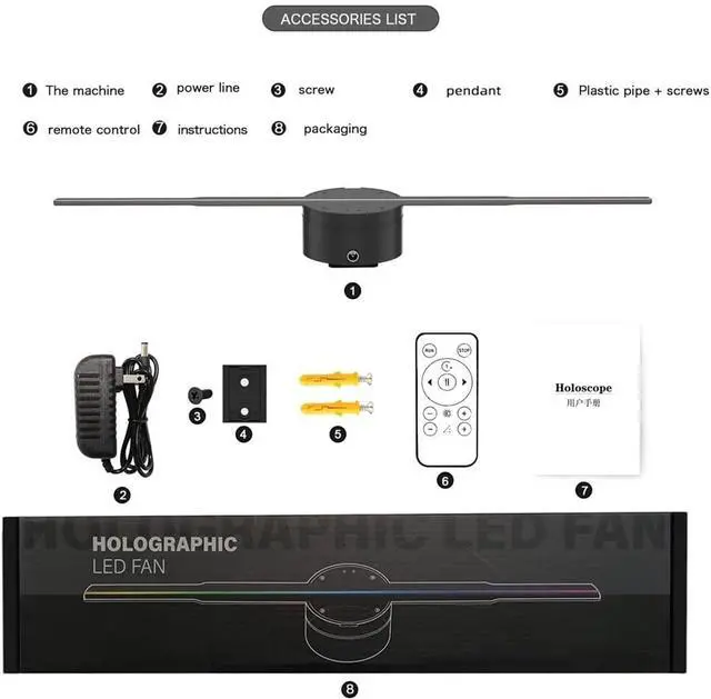 Hologram fan must be installed 6.5 feet or high-er on the wall for safety. Do not touch the fan s while it is running or test battery.