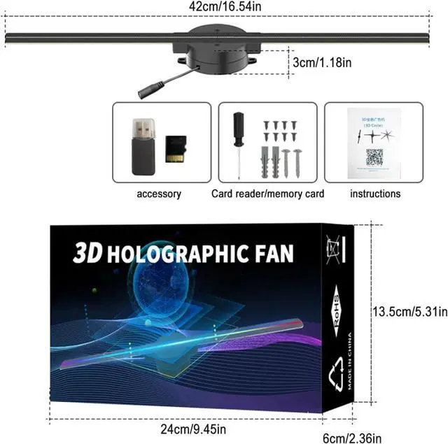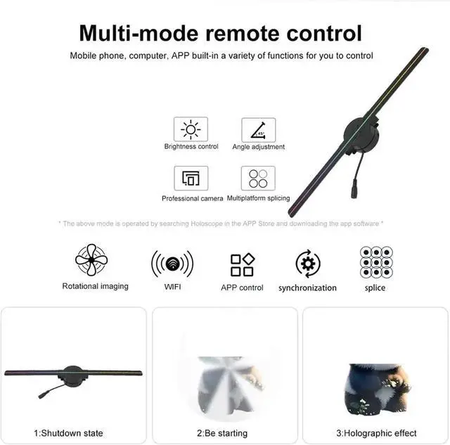 2. 224 LEDs & 2000224 resolution deliver stunning holographic projection with dual blades