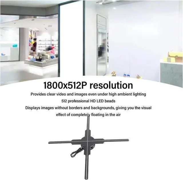 1. Offering a resolution of 1800x512P, the 3D hologram fan ensures clear visibility of videos and images even in high ambient light