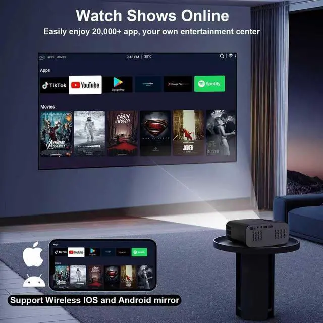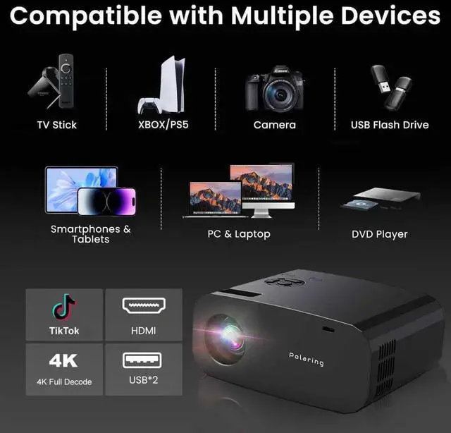 [Suitable for all scenarios]: home theater, outdoor movies, presentations and games, this projector can meet your needs, making it the ultimate versatile entertainment solution.