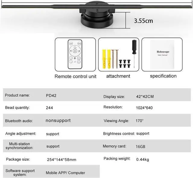 5. Equipped with a 16GB memory card and multi-station support, the 42cm Hologram Projector Fan is designed for ease of use