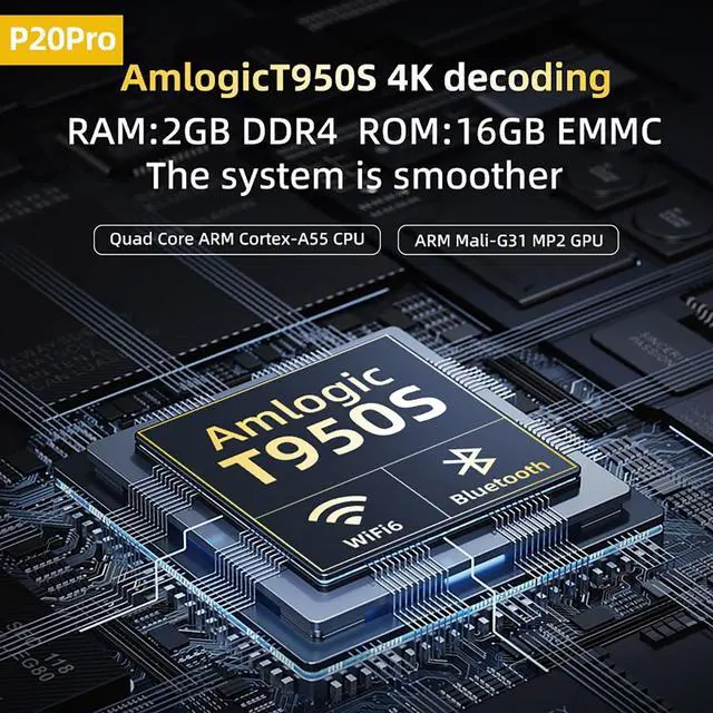 Flagship CPU/GPU Hardware SystemAmlogic T950S Quad-Core CPU, with 2GB Running Memory and 16GB eMMC Internal Storage;