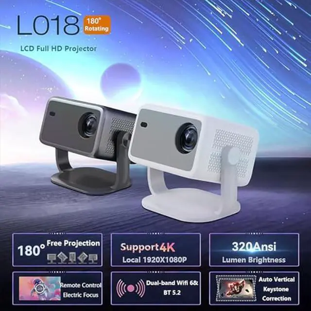 230° Rotable Design: This projector is equipped with automatic horizontal correction and 230° Rotable Design for a better viewing experience. It is perfect for ceiling installation or with projector brackets.