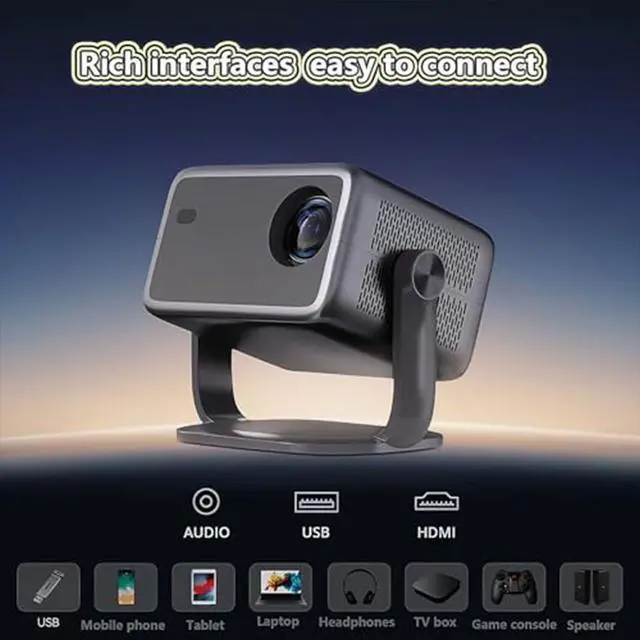 Multi-device connection, versatile use: This projector is equipped with HDMI, USB and 3.5MM audio interfaces, allowing easy connection of various devices, including smartphones, tablets, laptops and USB drives.