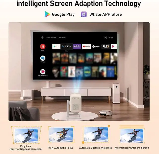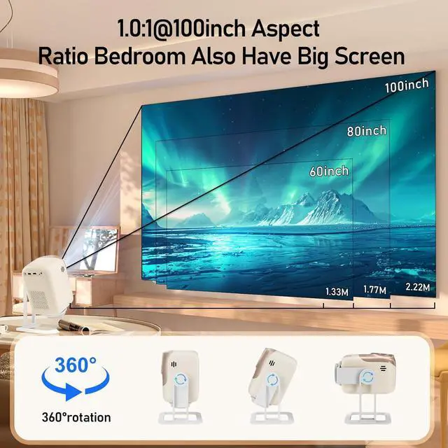 1. Versatile 360° Rotation for Ultimate Freedom Experience effortless setup with the projectors intelligent 360° rotatable design. Easily direct the projection onto any wall or ceiling from any angle, adapting instantly to your space and viewing preferences for truly flexible entertainment.