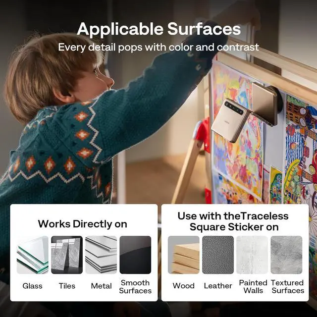 MountQuick & Hassle-Free Setup: Set up in seconds adjust the ZIP projector angle, and start watching, no tools needed! This stand for projector offers fast, easy installation.Compatible with Smooth Walls & Surfaces (Glass, Mirror, Desk)