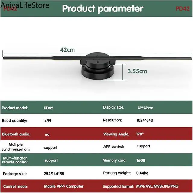 PD42 HD 3D Hologram Projector Fan Wifi Display Logo Light Led Sign Holographic Lamp Advertising Light Halloween Christmas Gift