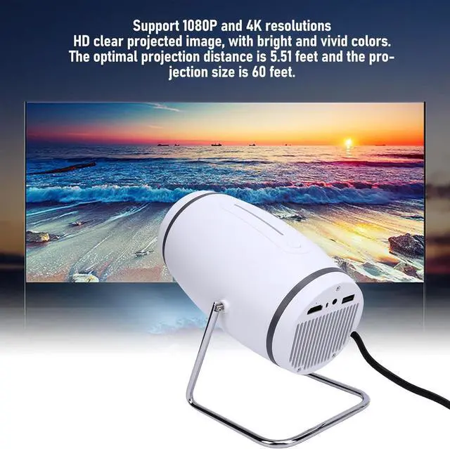 HD Picture Quality Projection: This portable projector supports 1080P and 4K resolution, delivering clear and detailed images. It employs advanced color technology and supports for HDR10, for HLG, and more. The colors are vibrant and realistic, restoring true visual effects. The optimal projection distance is 5.51 feet, with a projection size of 60 inches.