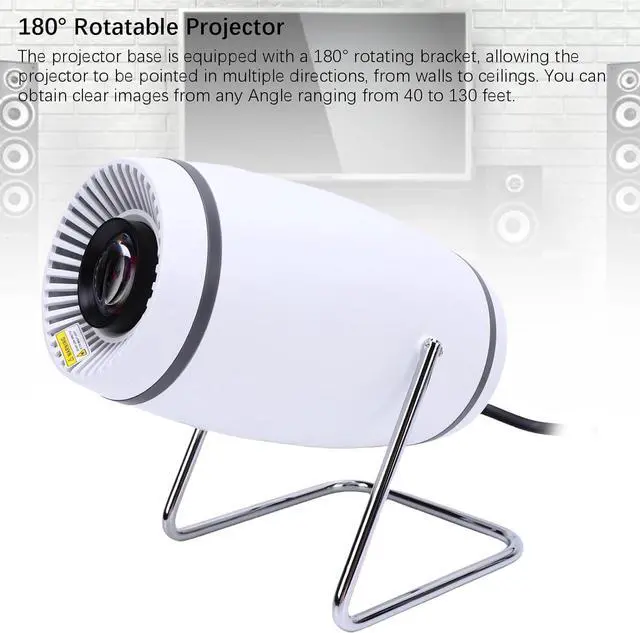 180° Rotatable Projector: The projector base is equipped with a 180° rotating bracket, allowing the projector to be pointed in multiple directions, from walls to ceilings. You can obtain clear images from any Angle ranging from 40 to 130 feet.