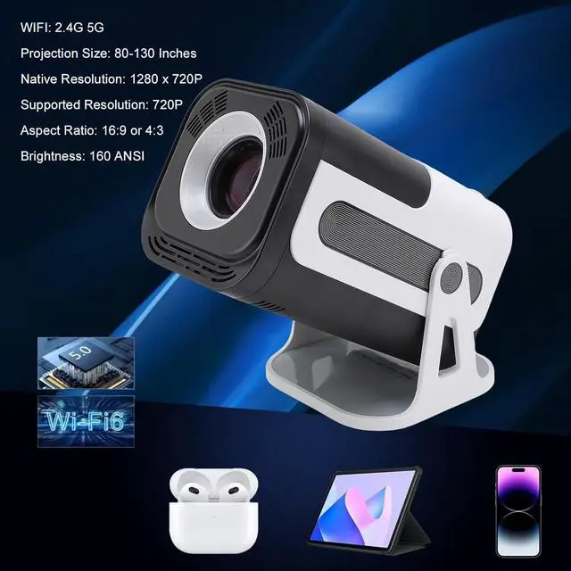 180 Degree Rotatable Design: The 180 degree adjustable bracket allows the projector to adapt to different viewing angles, suitable for home theater, or outdoor scenes.