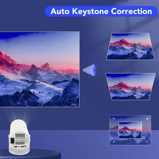 Auto Keystone Correction and Short Throw Projection: This movie projector has auto keystone correction technology, say goodbye to distorted images, presenting you with a nice picture, with manual focus, you can easily and quickly make adjustments to get a clear picture. In addition, this short throw projector features the latest 1.4:1 projection ratio technology, offering a large projection range.