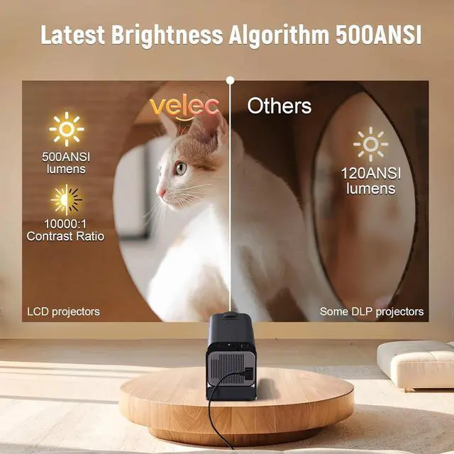 Native 1080P FHD & 4K HDR SupportExperience theater-quality visuals with native 1080P resolution and 4K HDR decoding. Advanced LCD technology delivers vibrant colors and crisp details, enhanced by 500 ANSI lumens for clarity in dim environments. The whale os projector 4k can project clear 30-150 inch images, and the 8000K color temperature and high contrast ratio ensure clearer pictures and brighter highlights, making every scene come alive without suffocating your eyes.