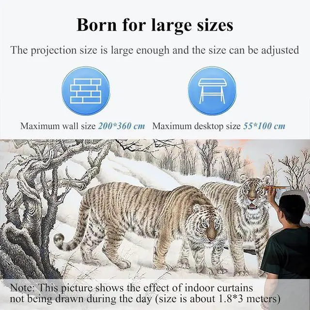 No Need to PrintNo need to print. Can be connected to mobile phones,USB flash drives for synchronous display. Mainly used for calligraphy, painting, pyrography, gourd painting, wall painting, jade carving,etc., and watching movies is also possible.
