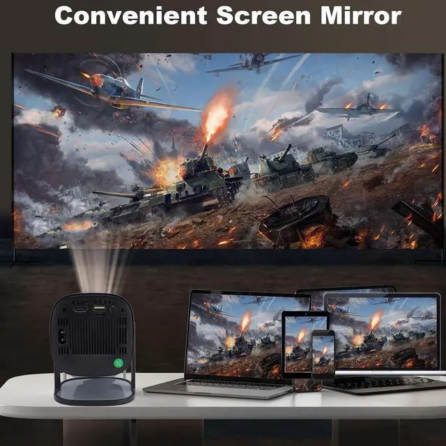 Versatile Viewing Angles: Enjoy a dynamic viewing experience with a unique 180° rotating design, projecting up to 100 inches from various angles, suitable for movie nights or presentations anywhere.