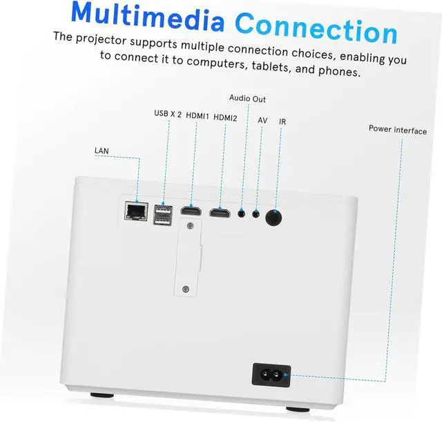 Multimedia connected: the projector supports multiple connection choices, enabling you to connect it to computers, tablets, and phones,cell phone projector,home projector portable