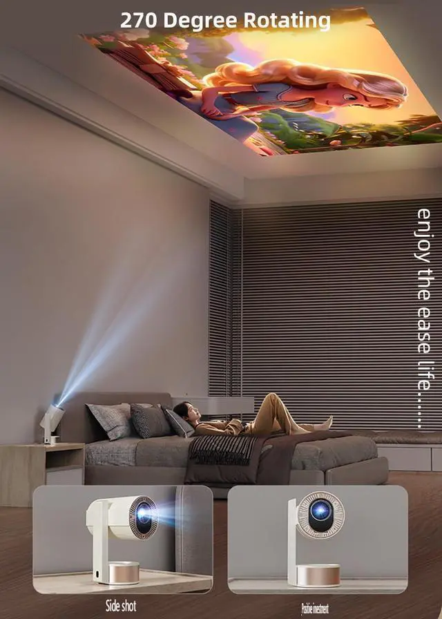 270 Degree Rotating Project on the ceiling? Floor? Sideways? Yup. the Paihao android projector is equiped with 270 degree gimbal base and support 360° image flip turns any wall into a cinema. Host a backyard movie night or a basement rave.