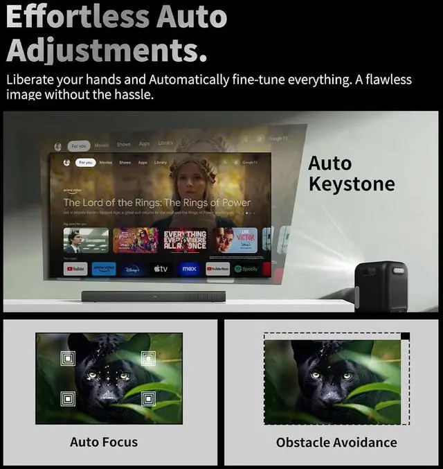 Pre-installed ertified system, built-in, support multi-language interface switching, without the need for complex connections to enjoy the viewing experience.2x3W speakers, bring immersive sound.