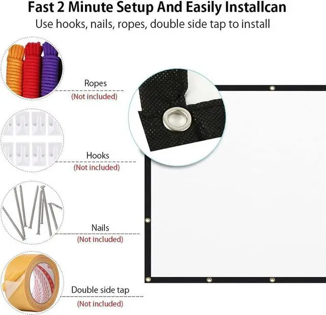 1. 6 holes can be used on both sides for customers to hang. 2. 160 degree wide Angle field of view. 3. Indoor and outdoor can be used. 4. Folding and easy to carry. 5. Washable and . Floor office, home, stage, studio, rack bracket installation