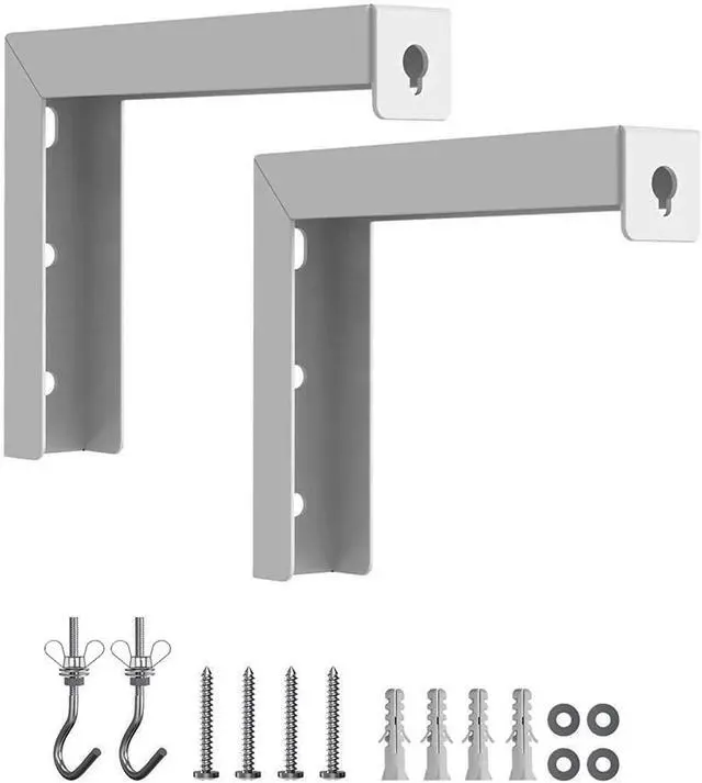 This 6" L-BRACKETS that mount to stud, dry wall, brick, and concrete walls, and feature hooks to hang your projector screen