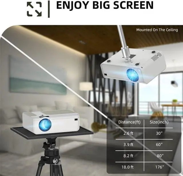 T4 Mini projector 3600 Lumens Support Full 1080P LED Proyector Big Screen Portable Home Theater Smart Video Beamer(D)