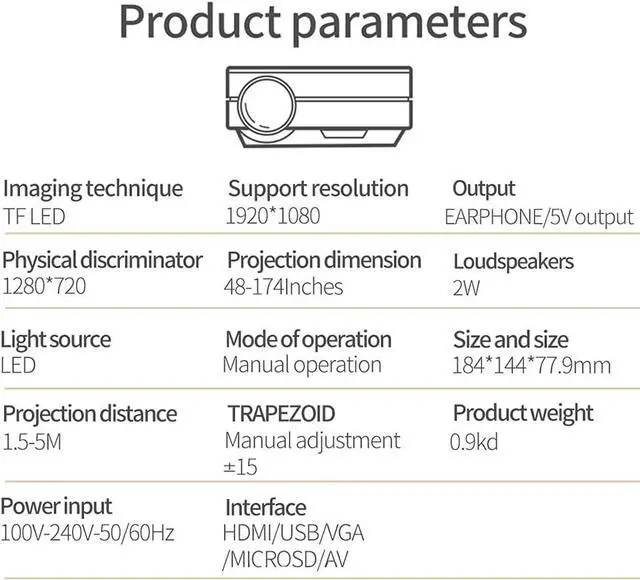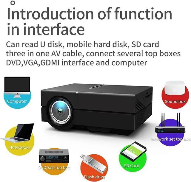 LED Projector 170 Full 1080P Suported with For Home Theater Movie Media Player(D)