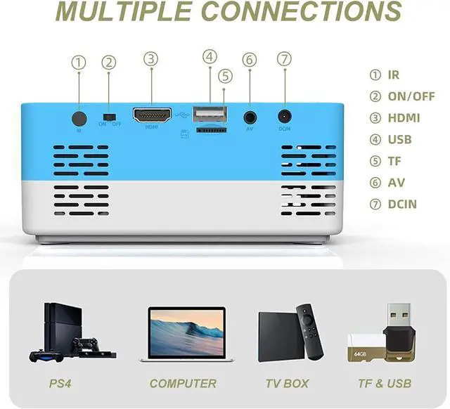 Ini Projector , 320*240 Pixels Supports 1080P Mini Beamer Home Media Player Kids Gift(Blue)