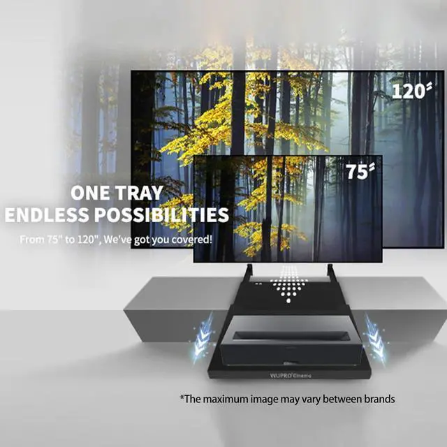 With a projection range of 75-120, the Wupro WP7 Auto Slide Tray is specially designed to save space and solve the problem of ultra-short-throw projectors not being able to project enough screen. Compatible with all UST projectors, the projected screen size will be different for different brands depending on the projector projection ratio.