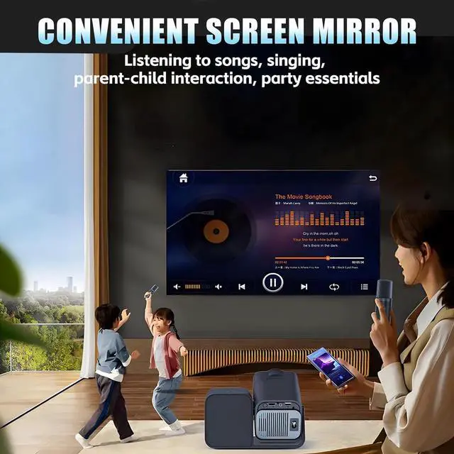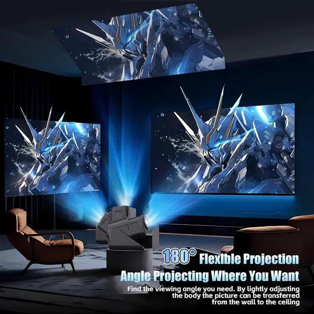 Using the small projector is a breeze. First, power the video projector on, and the Android 11 Smart System will boot up quickly. Connect to your home's Dual - band WiFi6 network for lightning - fast content streaming. You can easily navigate through the vast library of over 500,000 movies and TV shows or download your favorite apps from the more than 4,000 available options. When setting up for a movie night, adjust the projection distance between 1 - 4m to get an image size ranging from 30 to 150 inches. The 180° flexible rotation feature allows you to position the ceiling projectorprecisely, whether on a tabletop or even mounted on the ceiling. The built - in dual - channel 2*15W speakers provide immersive stereo sound, creating a home - theater - like experience. For karaoke sessions, simply connect the included microphones, and you're ready to sing along. Users rave about its compact yet powerful design, which fits perfectly in small apartments or offices, turning any space into an entertainment or presentation hub.